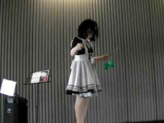 画像をご覧下さい。メイドさんが立っていますね。彼女がディアボロに挑戦します。ディアボロの動画としては、別にすごくないのですが、彼女が顔を上げた瞬間にちょっとビックリしました。動画のタイトルも納得。この動画をアップした方が、着ぐるみを作って販売しているようです。YouTubeを使えば、海外からもオファーがあるのかも。