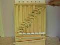 長方形の木のピースを3本ならべて正方形を作り、その正方形の向きをを90度変えたものを積み重ね続けてタワーを作ります。積み木の塔が出あがったらゲームスタート。交互にピースを1本ずつ抜いてタワーの上に積み重ねていきます。バランスを崩してタワーを壊してしまったら負け。この「ジェンガ」というゲームで難しいのはピースの抜き方です。木でできているのでピース同士の摩擦が強く1つを動かせば周りにも影響します。また、まっすぐ抜かないとタワーが揺れてしまいます。積み重なったものを一瞬でバランスよく抜き出すにはどうすれば良いか。そう考えて作られたのがこちらの「ジェンガピストル」。引き金を引くとピストルの先端から勢いよく木の棒が飛び出します。狙ったピースを一瞬でタワーから抜くことができます。「だるま落とし」の発想ですね。