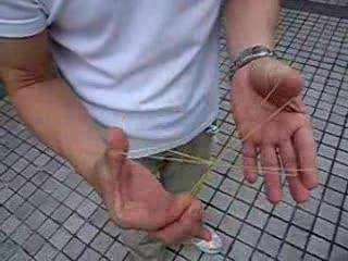 ジャッキー・チェンがマジックを披露している珍しい動画を見つけました。マジックは「クレイジーマンズハンドカフス」。直訳すると「狂人手錠」となり、なにやら恐ろしげですが、シンプルながらも驚きの大きなマジックです。交差した2本の輪ゴムが、サッと離れてしまいます。ジャッキーと同じ技法かどうかわかりませんが、「すぐわかる!すぐできる!マジック大百科―簡単にマスターできるスタンダードマジック167