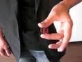 マジシャンは指から赤い指輪を抜き取ると、手で軽くこすります。すると、指輪は一瞬で色が変ってしまいます。今度は赤い指輪を手に持って、ブンブン振ります。手を止めると、指輪の色が変化しています。最後は手のひらに乗せた赤い指輪を放り投げ、空中でキャッチすると色が変ってしまいます。