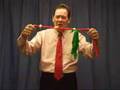 マジシャンが持っている赤いロープには黄色い結び目が3つあります。観客から見て右端の結び目には緑色のシルクが巻き込まれています。マジシャンはこのシルクを他の結び目に移動させると宣言します。掛け声をかけながらロープを背中に回すマジシャン。再びロープを前に持ってくると、緑のシルクが反対側の結び目に移動しています。が、ちょっと様子がおかしいですね。右に、左に、何度もシルクを移動させるマジシャン。トリックに気が付いた観客からは、後ろで持ち替えていると野次が飛びます。マジシャンは野次に反論し目の前でやってみせます。ほら、右側に移動した…と思ったらシルクは真ん中の結び目に移動してしまいました。これにはマジシャンもビックリ。