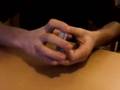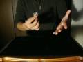 マジシャンはテーブルからコインを1枚拾います。左手で握ったコインが消えて、左肘から現れます。再び左手でコインを消しますが、左肘ではなく右肘から出てきます。もう一度左手でコインを消し、左肘から取り出します。今度はコインを左肘に押し込み、右肘から取り出します。続いて右手でコインをテーブルに押し当てるとコインがテーブルに沈み込み、左手ですくい上げます。左手でテーブルに沈めたコインは右手で回収。そして最後は空中から何かを摘んで握ったコインに合わせていきます。コインを両手でつかんで引っ張ると、コインがびよーんと伸びてスプーンになってしまいました。