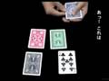 マジシャンはトランプの束からカードを2枚無作為に選びます。そして取り出したのがカメレオンカード。2枚のカードのうち1枚をめくり、カメレオンカードをその上にかざすと、カメレオンカードはすべて同じマークになってしまいます。さらにカードの裏面も乗せるカードによってどんどん変化していきます。まさにカメレオンのような変りようです。