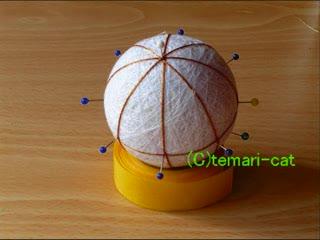 手鞠には美しい模様がついていますが、どうやって作るのでしょうか? 鞠に布を貼り付けるのではなく、直接刺繍していくのですね。芯になる素材にヒモを巻きつけて球形にし、その上に地球儀の経度・緯度のラインのように糸を張り、幾何学的な模様を描いていきます。この動画は「菱重ね」という菱型が幾重にも重なった模様ですが、ほかにもたくさんの手鞠が紹介されています。