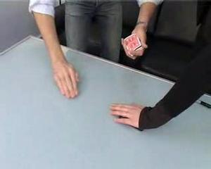 箱からトランプを取り出したマジシャン。赤3枚、黒3枚を抜き出します。片手に黒、片手に赤を持ち、テーブルの上に1枚ずつ交互に重ねていきます。しかし、6枚のカードをひっくり返すと黒と赤にキレイに分かれています。再び交互に重ねますが、やはり分かれてしまいます。最後はカードの表を上にして赤と黒を交互に重ねます。間違いなく交互に重なっています。ピッタリと重ねてから、カードを持ち上げることもなく、1枚ずつ動かしていきますが、水と油が分かれるように赤と黒に分かれてしまいました。