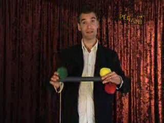 マジシャンが持つ棒には、4つのポンポンが付いています。向かって右には黄色と赤、左には緑と青です。緑を引けば青が持ち上がり、黄色を引けば赤が持ち上がります。それぞれヒモでつながっているようです。しかし、マジシャンがヒモの伸びきった青いポンポンをさらに引っ張ると、隣の赤いポンポンが上がります。同じように赤を下ろせば青が上がります。縦につながっていたはずのポンポンが、いつの間にか横につながってしまったようです。次にマジシャンは緑を引き上げます。すると赤が引っ張られていきます。そして緑を下ろすと青が下がります。黄色を上げると青が上がり、黄色を下げると赤が下がります。もうめちゃくちゃです。棒の中でヒモはどんな複雑なつながり方をしているのか―と思っていたら、最後にマジシャンは棒を2つに分けてしまいます。