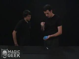 マジシャンは観客から紙幣を1枚受け取ると、角を破いて破片を返します。残りは丸めてボール状にしてテーブルの上に置きます。マグカップをひっくり返したら、ボールを握りナイフでまじないをかけます。すると手の中のボールがカップの中に移動します。次にマジシャンはカップを手に取り、観客の目の前でボールをカップに投げ入れます。するとカップの底を貫通してボールが落ちてきます。今度はボールをポケットに入れますが、カップの中に移動します。もう一度行うと、カップの中からはボールではなくレモンが出てきます。紙幣はどこに消えたのでしょう? マジシャンがナイフでレモンを切ると、中から1枚の紙幣が出てきます。観客の持っていた破片ともピッタリ一致します。