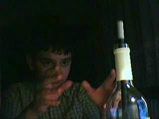 マジシャンは瓶の口にウォンドを挿し込みます。両手で瓶に向かってまじないをかけると、ウォンドがふわふわと上下に動きます。まるで瓶から抜け出そうとしているかのようです。