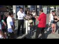 ストリートマジシャンがカップ&ボールのようなマジックをしています。ポケットに入れたボールがカップから出てきたり、カップに入れたはずのボールが消えたり。小さなボールが消えて大きなスポンジボールが出てきたりもします。マジシャンはカップをテーブルに置くギリギリのところを見ても怪しい点はないと説明し、観客の男性をしゃがませます。そしてカップを持ち上げると、ボールではなく小さな箱が出てきます。その先は…。